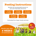 Sprinkle the recommended number of scoops over your pet's food daily. For best results, use for a minimum of 4 weeks. Scoop included.