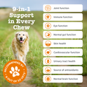 Our Senior Advanced 9-in-1 Chews are packed full of vitamins that help with everything from soothing skin and aiding digestion to promoting heart health. Vitamins A and C are antioxidants – helping to support immunity and reduce oxidative stress. B Vitamins are all about healthy eye and brain function, while Biotin helps maintain healthy skin and a glossy coat.