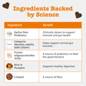 "Gut health is at the core of your dog’s overall well-being. These Probiotic Chews are designed to support digestive balance by encouraging good bacteria growth and supporting immune health. A healthy gut can also improve your dog’s mood and skin."